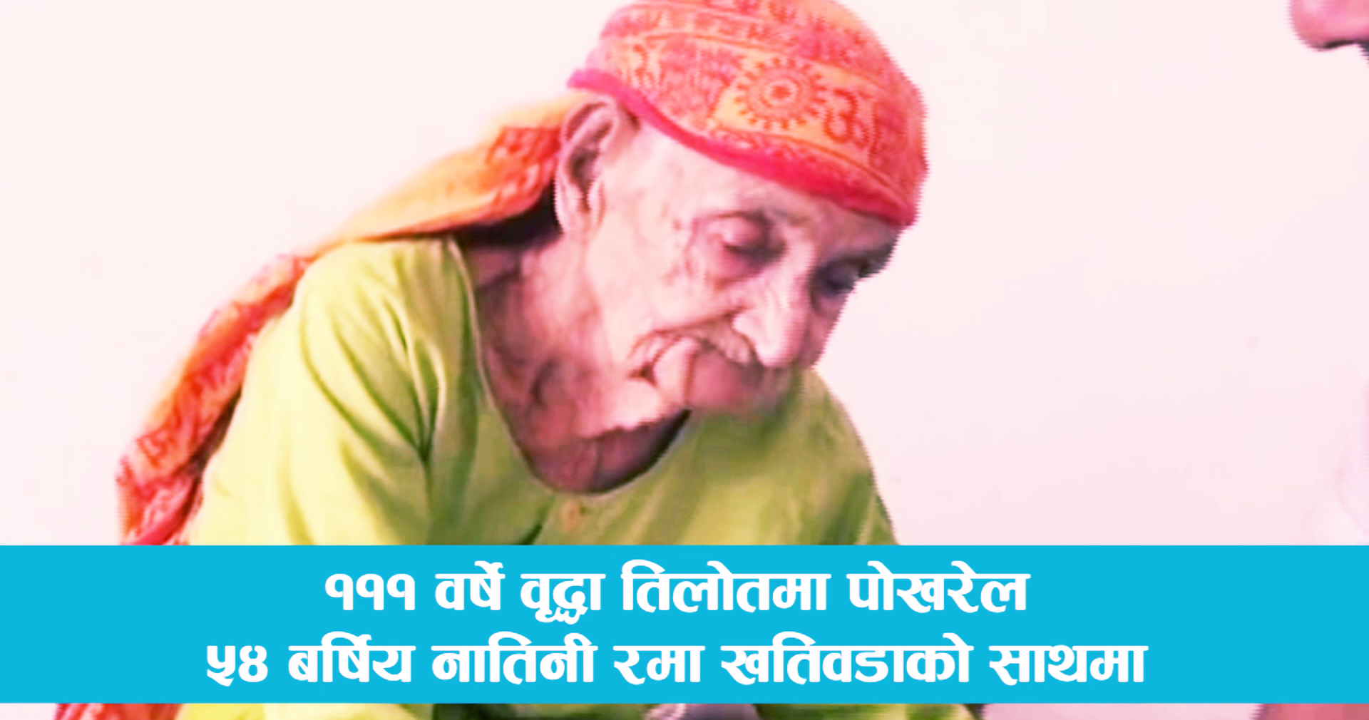 १८ साउन, ईटहरी। मोरङ्गको सुन्दरहरैचामा १११ बर्षिय बृद्ध भेटिएकी छिन । सुन्दरहरैचा ५ स्थित बलियामा तिलोतमा पोखरेल १९६३ सालको नागरिकता अनुसार उनि १११ बर्ष उमेर पुगेकी हुन । उनी अहिले ५४ बर्षिय नातिनी रमा खतिवडाको साथमा रहदै आएकी छिन । उनको अबस्था भने कान नसुनिने बायेक अरु सामान्य जस्तै छ । अरुले बोलेको काम सुन्ने र आखा कमजोर बायेक हिड्ने डुल्ने सक्ने पोखरेल देखेर सबै अच्चमित बन्ने गरेका छन । एक महिना अघि छातीमा समस्या देखिएपछि मात्र थलिएकी पोखरेल हिड्ने डुल्ने, आफै नुहाउने खाने, गफ गर्ने आदी सबै गदै आएकी छिन ।