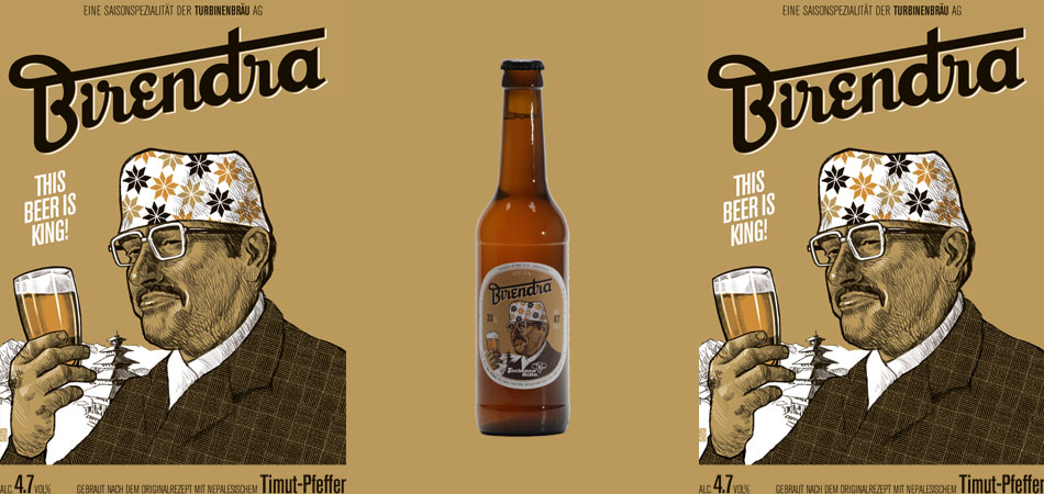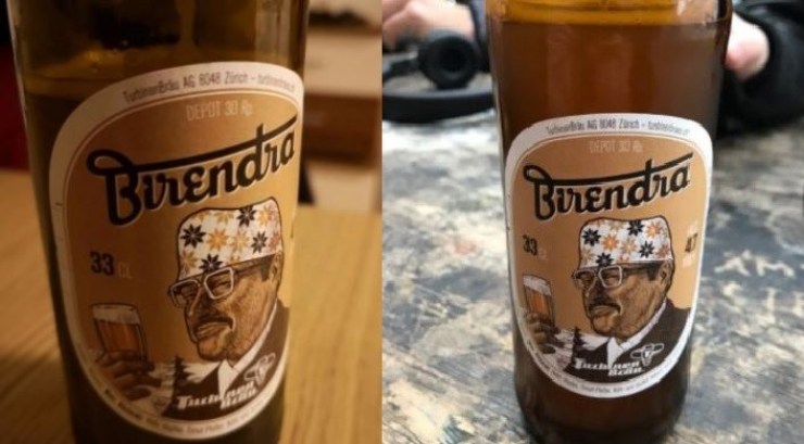 काठमाडौं । नेपालीका दिबंगत भएका लोकप्रिय राजा श्री ५ वीरेन्द्र वीर विक्रम शाहदेवको नाम बाट ‘वीरेन्द्रबियर ’नामको ब्राण्ड बनाएर एउटा स्विजरल्याण्डको कम्पनीले बेचिरहेको छ । बियरको लेबलमा बियर हातमा लिएर मुस्कुराउँदै गरेका राजा वीरेन्द्रको फोटो समेत छ। पृष्ठभूमिमा पाँच तले मन्दिर पनि देखिन्छ ।