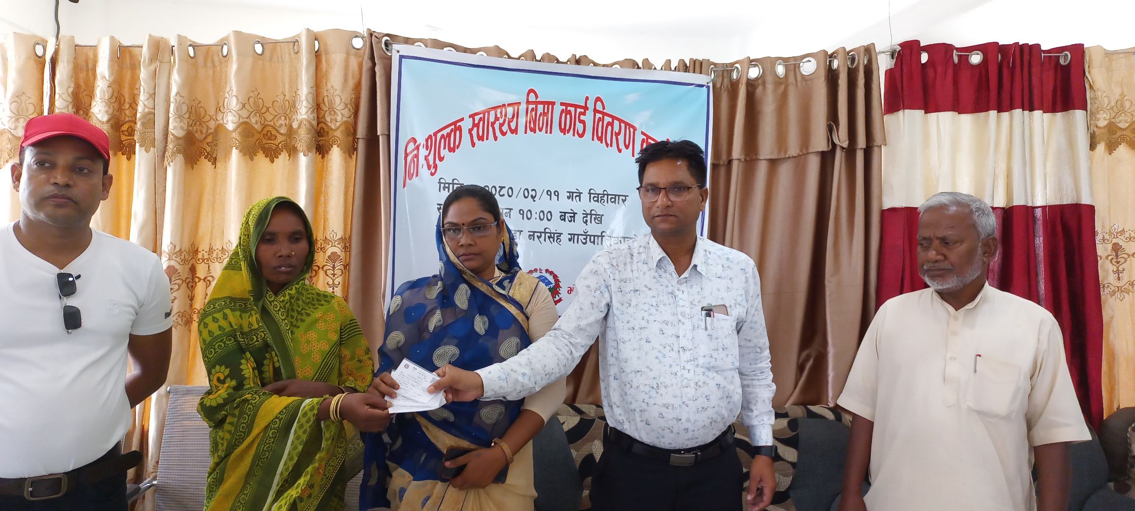 इनरुवा । सुनसरीको भोक्राहा नरसिंह गाउँपालिकामा निशुल्क स्वास्थय विमा कार्ड वितरण भएको छ। गाउँपालिकाले तेस्रोपटक अति गरिव तथा विपन्न परिवारलाई सो विमा कार्ड वितरण गरिएको हो। विहिवार गाउँपालिकाको सभा हलमा एक कार्यक्रमका बिच विमा कार्ड वितरण गरेको हो।