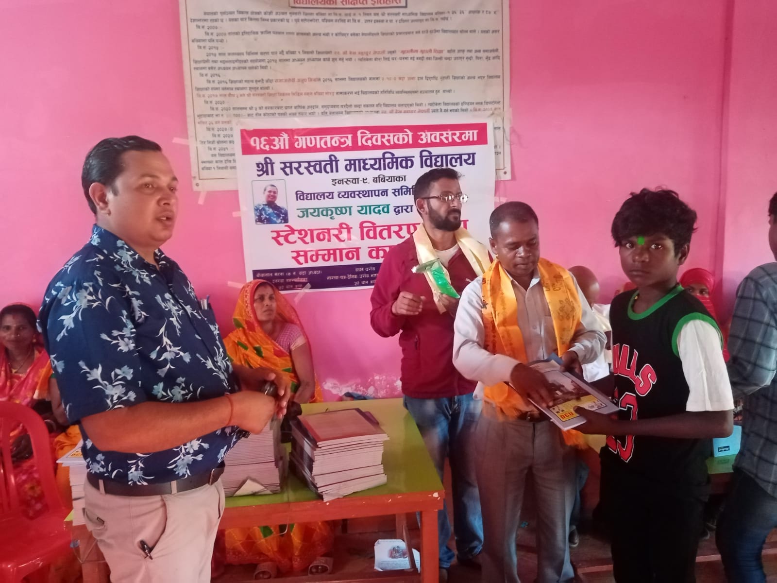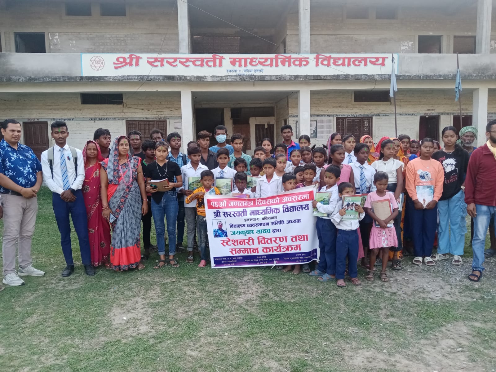 विद्यालय व्यवस्थापन समितिका अध्यक्ष जयकृष्ण यादवले आफ्नो केही साथीहरुको सहयोगमा ४५ जना विधार्थीलाई स्टेस्नरी वितरण गरिएको विद्यालयले जनाएको छ । अध्यक्ष यादवले विद्यालय व्यवस्थापन समितिमा आएदेखी दुई पटक स्टेस्नरी वितरण र एक पटक विद्यालयलाई आफ्नै व्यत्तिगत पंखा हस्तान्तरण गर्नुभएको छ । सोमबार १६ औं गणतन्त्र दिवशको अवसरमा सरस्वती मावि बबिया, इनरुवा ९ सुनसरीमा ४५ जना विधार्थीलाई स्टेस्नरी वितरण तथा २२ जना अभिभावकलाई सम्मान गरिएको जनाएको छ । अभिभावक तथा विधार्थीलाई जनही तीन थाप कपि र एक थान डटपेन सहित स्टेस्नरी हस्तान्तरण गरिएको थियो । दिवशको अवसरमा आयोजीत कार्यक्रमका प्रमुख अथिति गोरखापत्र दैनिकका उराँव भाषा पृष्ट संयोजक एवम् उराँव आदिवासी जनजाती प्रतिष्ठानका अध्यक्ष बेचन उराँवले गणतन्त्र दिशवको अवसरमा विधार्थीलाई स्टेस्नरी वितरण गर्ने कार्य प्रसशनीय रहेको बताउनुभयो । उराँवले आफूले पनि सीमान्तकृत, दलित तथा गरिब, विपन्न र जेहेन्दार विधार्थीहरुलाई उत्थान गर्न तथा प्रोत्साहन गर्न केही स्टेस्नरी सहयोग गरेको बताउनुभयो ।
